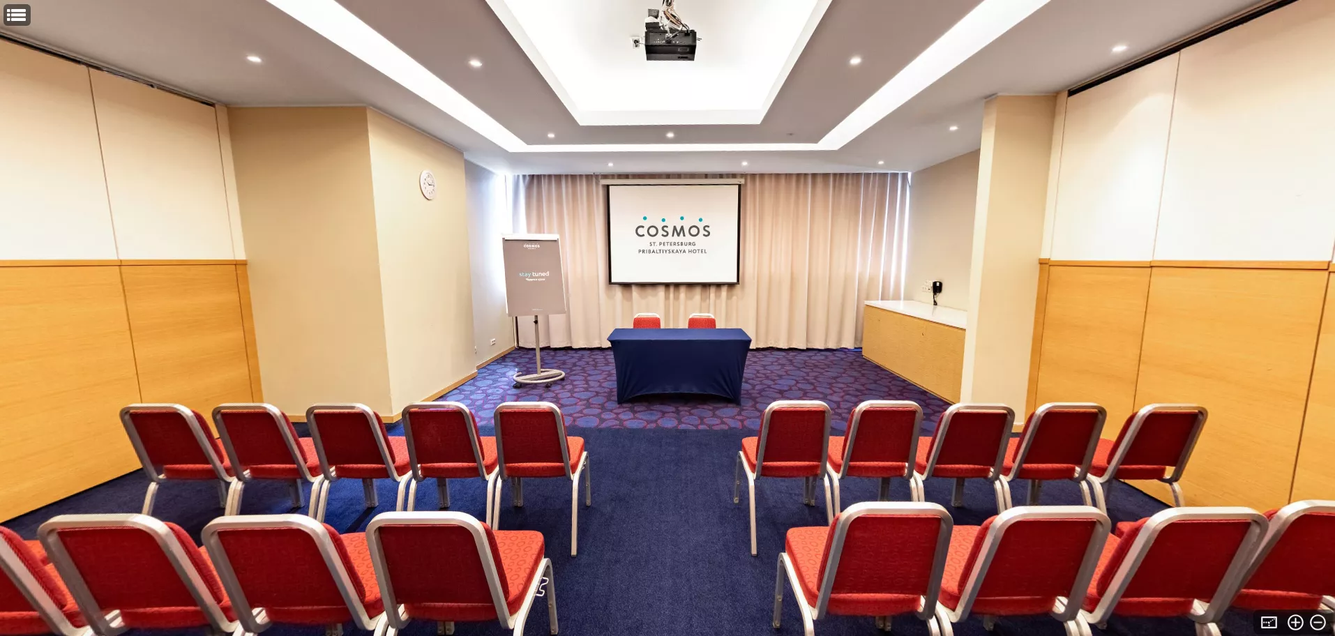 Универсальный зал для проведения деловых и светских мероприятий. Оснащен бесплатным высокоскоростным Wi-Fi, кондиционером и аудиовизуальным оборудованием