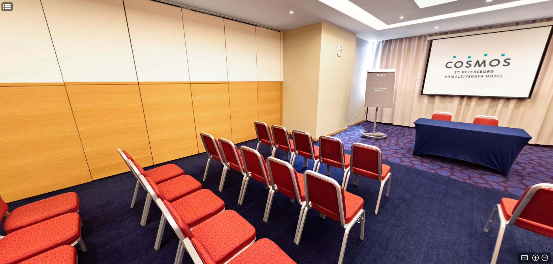 Универсальный зал для проведения деловых и светских мероприятий. Оснащен бесплатным высокоскоростным Wi-Fi, кондиционером и аудиовизуальным оборудованием.