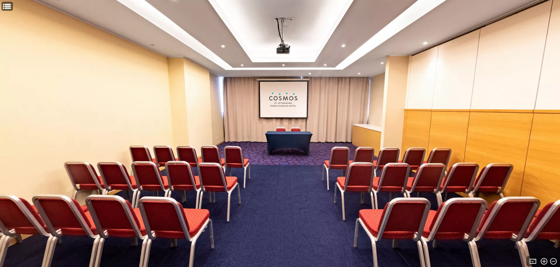 Удобное и комфортабельное помещение для проведения совещаний и деловых переговоров. Оснащено бесплатным высокоскоростным Wi-Fi, кондиционером и аудиовизуальным оборудованием.